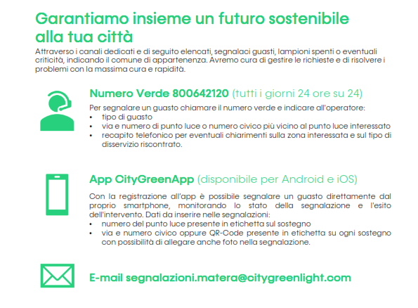 Infine, c'è la classica mail: segnalazioni.matera@citygreenlight.com.